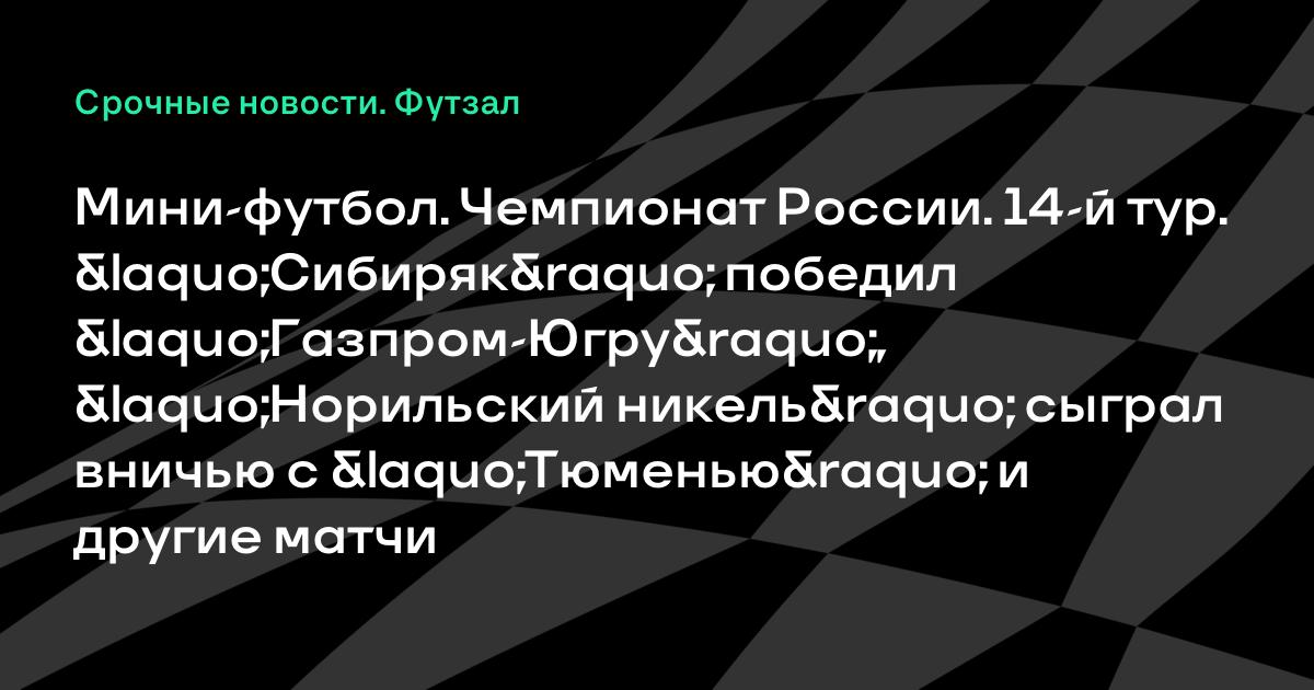С 7 по 10 марта прошли матчи 14-го тура чемпионата России по мини-футболу. «Сибиряк» победил «Газпром-Югру» (4:3), «Норильский никель» сыграл вничью с «Тюменью» (4:4).