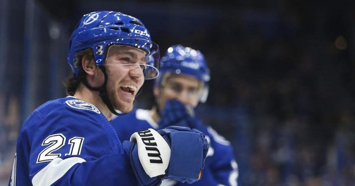 Форвард «Тампы» Брэйден Пойнт забил гол в матче с «Сент-Луисом» (3:4).