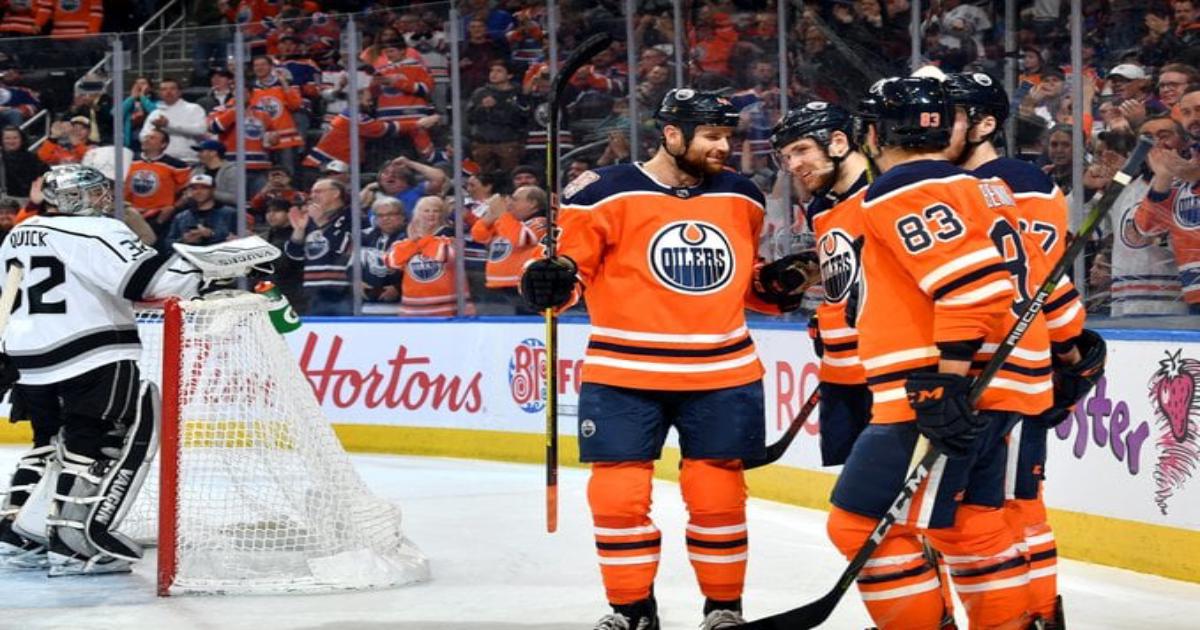 Форварды «Эдмонтона» Райан Нюджент-Хопкинс и Леон Драйзайтль сделали хет-трики в матче регулярного чемпионата НХЛ с «Лос-Анджелесом» (8:4).