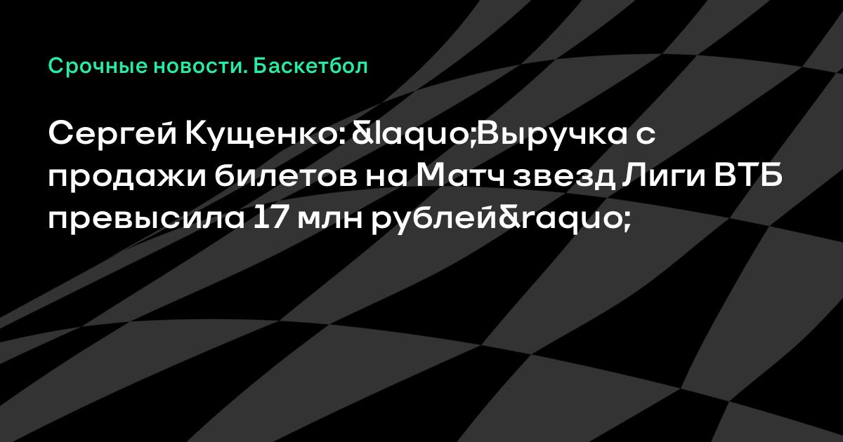 Президент Единой лиги ВТБ Сергей Кущенко заявил, что выручка лиги от продажи билетов на третий Матч всех звезд, прошедший в феврале в Москве, превысила 17 миллионов рублей.