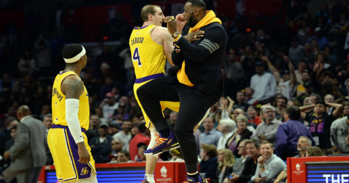 Скамейка «Лейкерс», включая главного тренера Люка Уолтона и звездного форварда Леброна Джеймса, осталась под впечатлениям от действий Карусо.