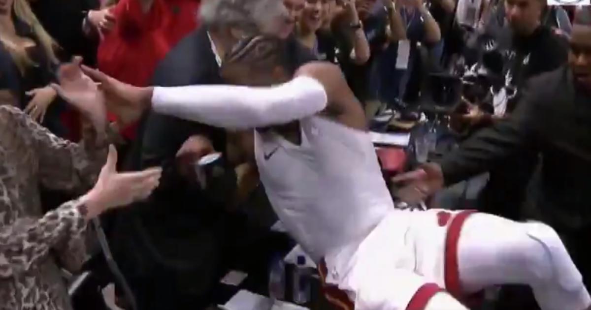 Дуэйн Уэйд поскользнулся, пытаясь запрыгнуть на комментаторский стол
