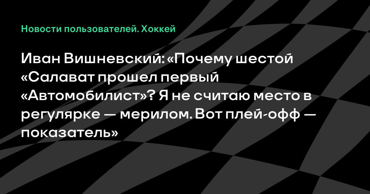 Иван Вишневский: «Почему шестой «Салават прошел первый «Автомобилист»? Я не считаю место в регулярке — мерилом. Вот плей-офф — показатель»