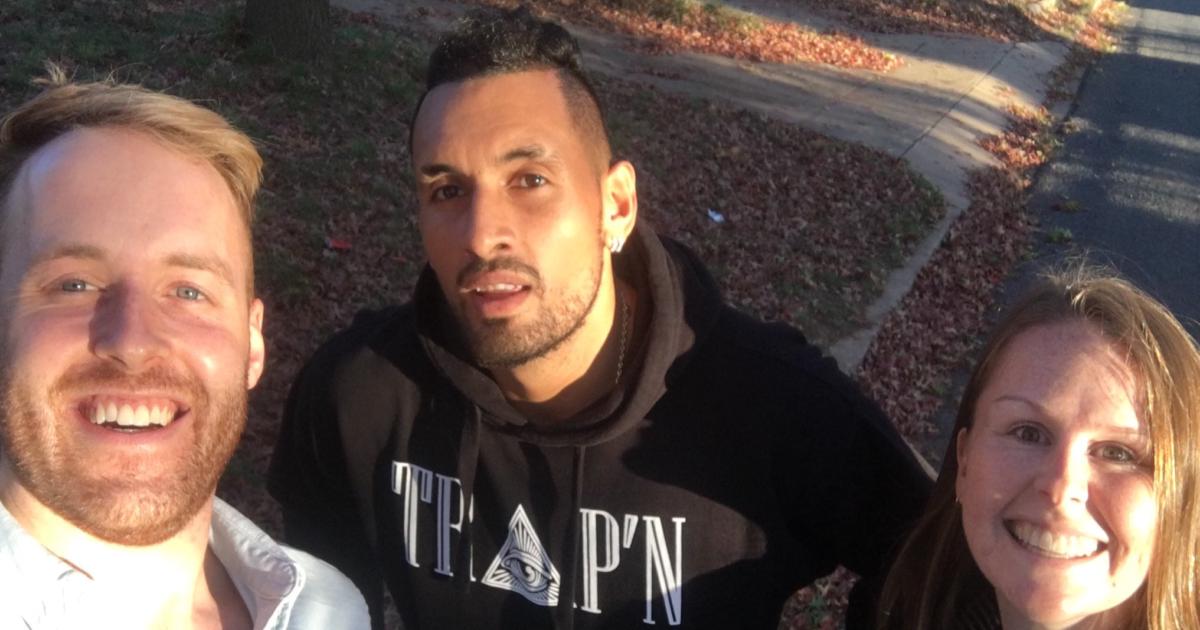 В национальный австралийский праздник День АНЗАК 23-летний Кириос, не выступавший с «Мастерса» в Майами, возвращался с тренировки, когда увидел мужчину и женщину, с трудом толкавшую машину. Он остановился на своей машине, которая, по описанию женщины, «выглядела как Бэтмобиль: черная и блестящая», и предложил помочь.