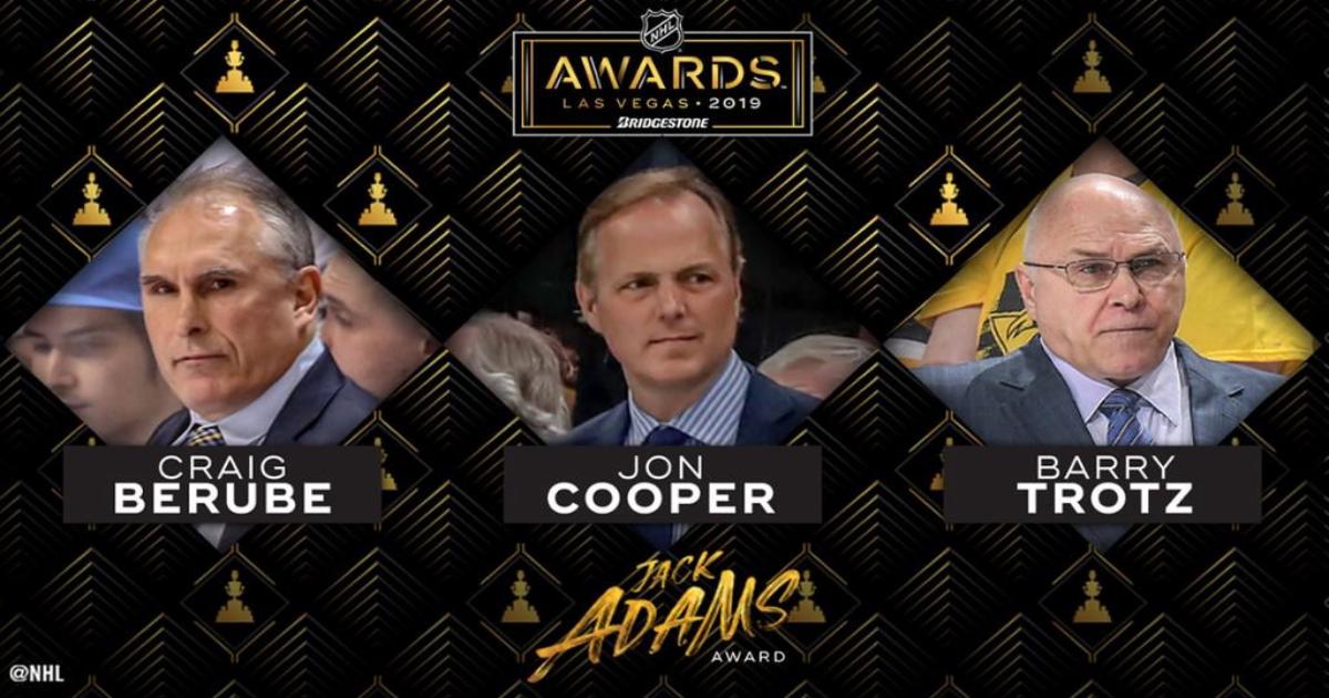 НХЛ назвала имена главных претендентов на «Джек Адамс Эворд» – приз тренеру, который внес самый значительный вклад в успех своей команды в регулярном чемпионате НХЛ.