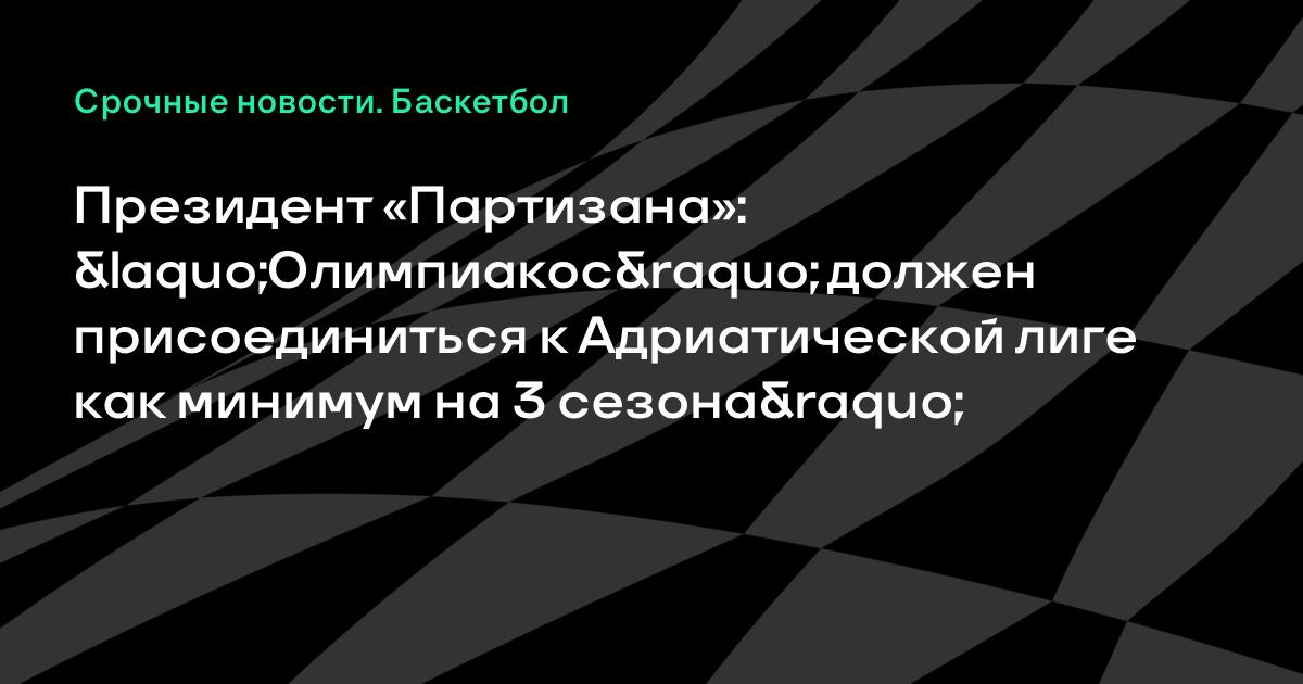 Президент «Партизана»: «Олимпиакос» должен присоединиться к Адриатической лиге как минимум на 3 сезона»