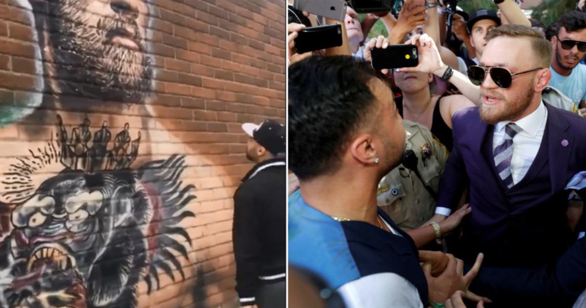 Экс-чемпион мира по боксу Пол Малиньяджи плюнул на граффити с изображением Конора Макгрегора.