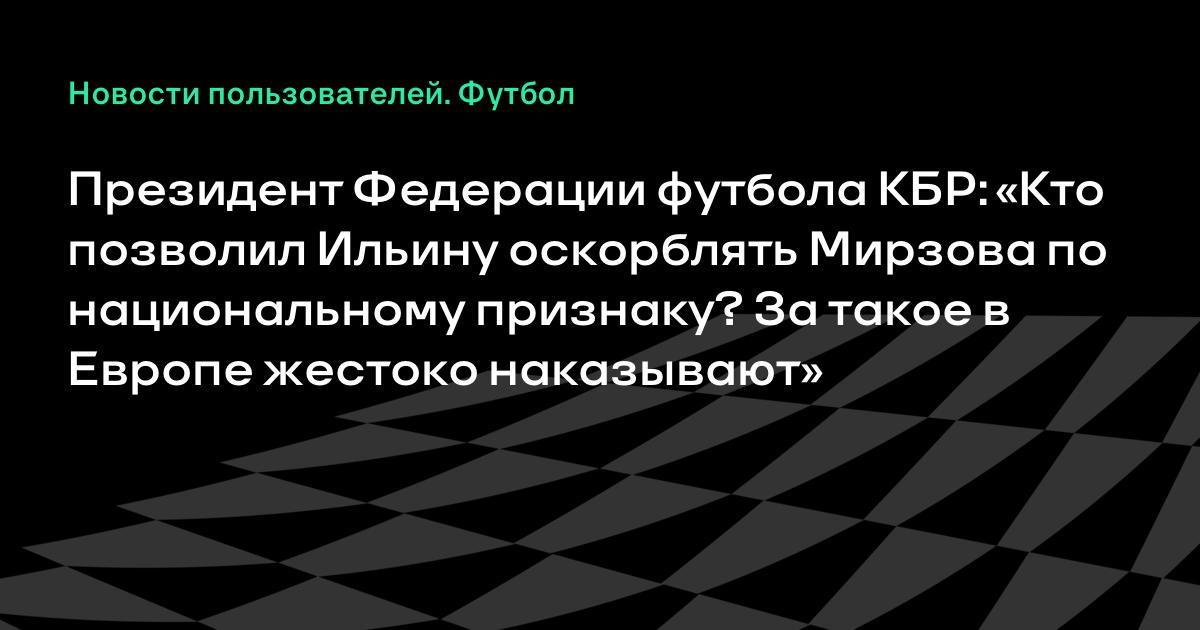 Президент Федерации футбола КБР: «Кто позволил Ильину оскорблять Мирзова по национальному признаку? За такое в Европе жестоко наказывают»