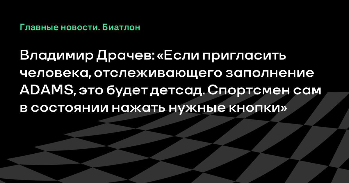 Единственное, можно подумать над приглашением человека, который будет следить за системой ADAMS, чтобы они не получали «флажки» за пропуск допинг-тестов, но, как мне кажется, это уже будет детским садом. Спортсмен и сам в состоянии нажать в интернете нужные кнопки», – сказал Драчев.