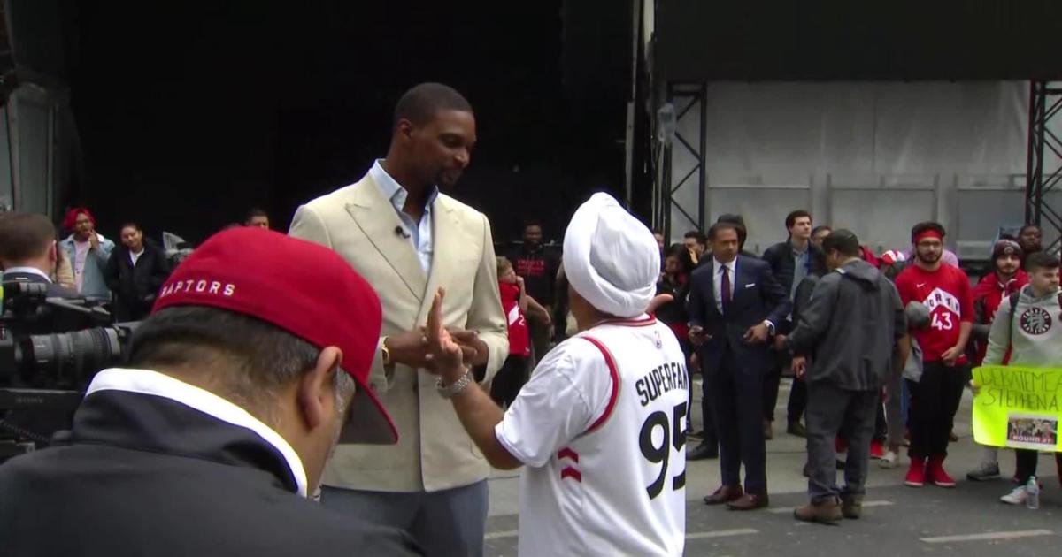 Бывшая звезда «Торонто» Крис Бош был тепло встречен болельщиками в Jurassic Park, куда он прибыл, чтобы освещать финальную серию плей-офф.