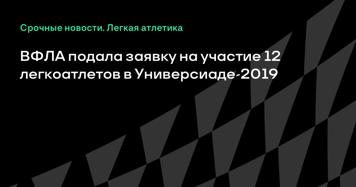 Всероссийская федерация легкой атлетики (ВФЛА) подала заявку в Российский студенческий спортивный союз (РССС) на участие в летней Универсиаде 2019 года.