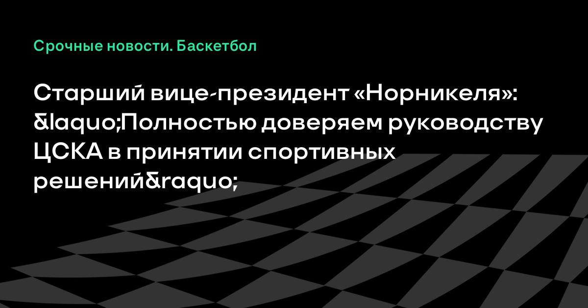 Старший вице-президент «Норникеля»: «Полностью доверяем руководству ЦСКА в принятии спортивных решений»