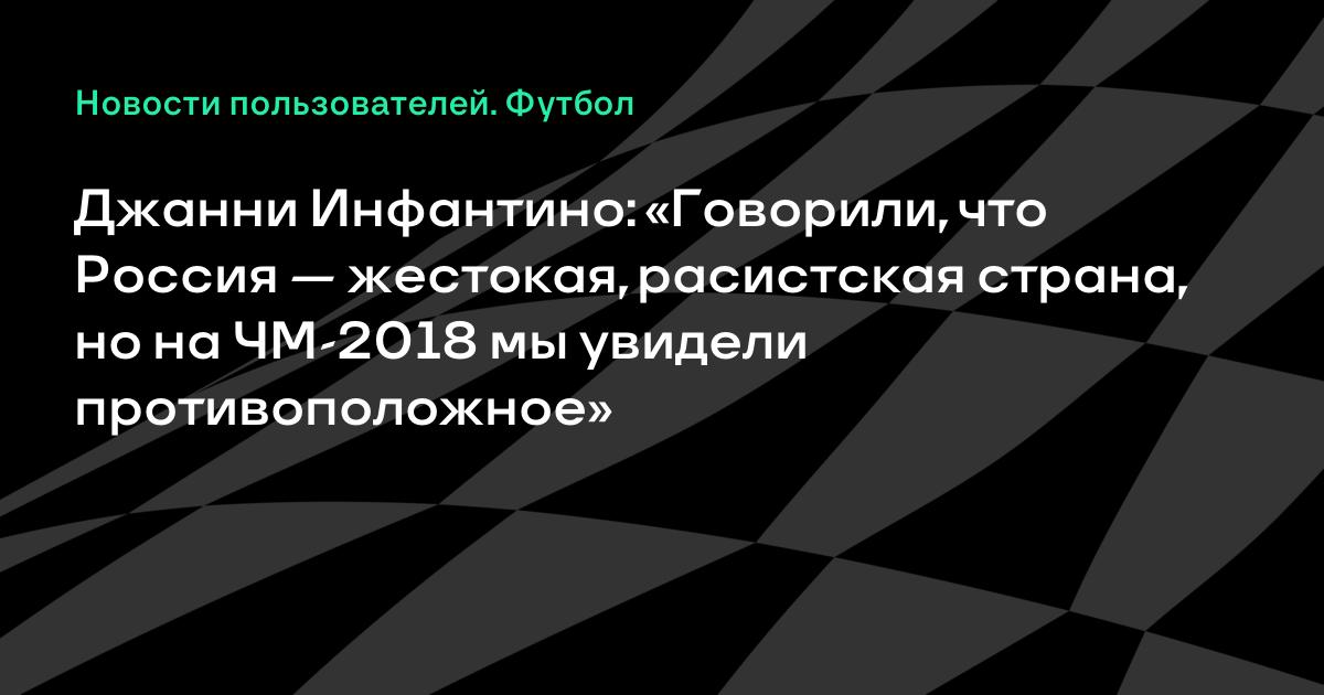 Джанни Инфантино: «Говорили, что Россия — жестокая, расистская страна, но на ЧМ-2018 мы увидели противоположное»