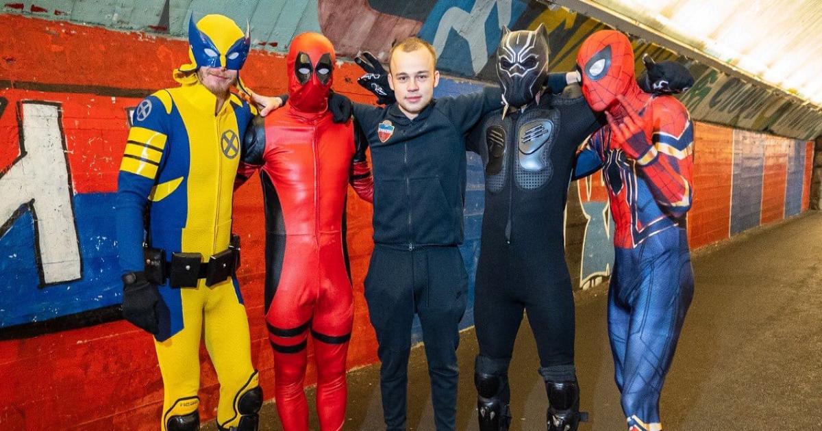 Хэй! Деревня!) Ну, какие «супергерои СО ВСЕХ МИРОВ»? Ну, реально так на рынке говорит торговец мандаринами или хлопотливая тетенька, а то и мерзкая карлица с соленьями. Из. Или вообще без предлога...
