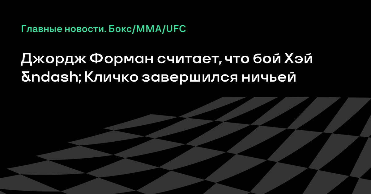 Экс-чемпион мира в супертяжелом весе американец Джордж Форман считает, что поединок между Владимиром Кличко и Дэвидом Хэем, который состоялся сегодня в немецком Гамбурге, завершился ничьей.