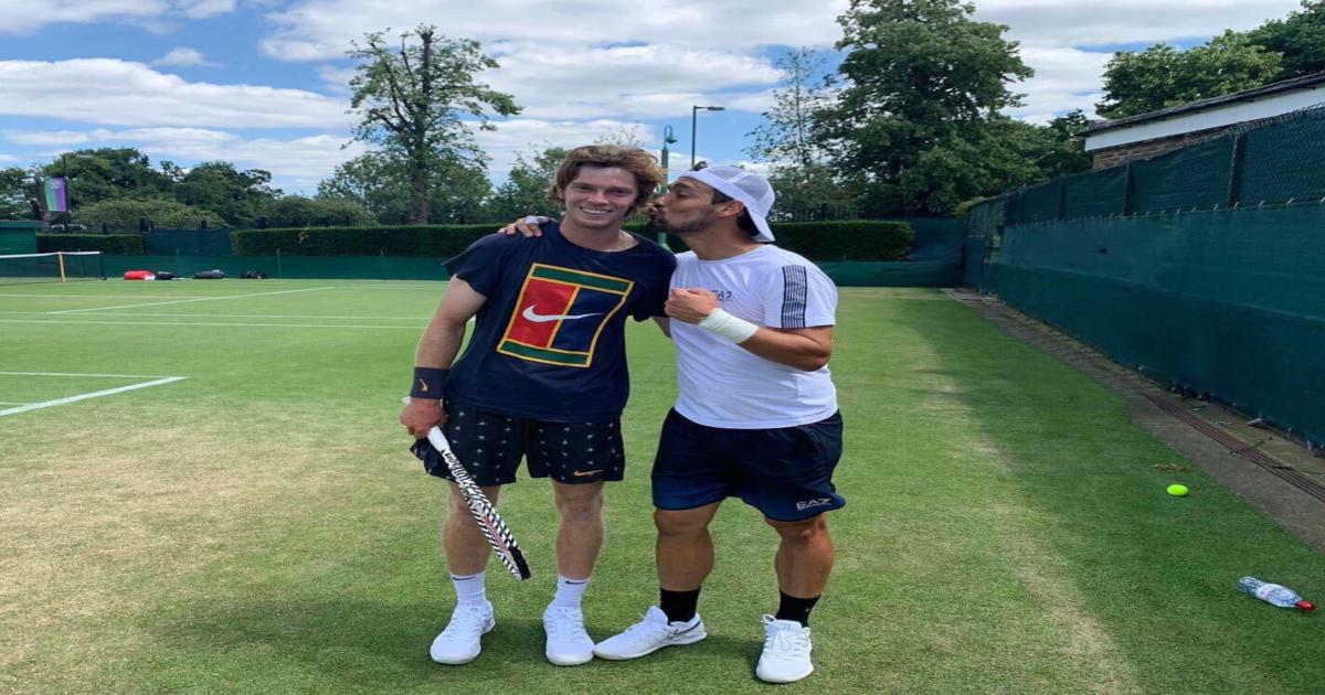 Десятая ракетка мира Фабио Фоньини на «Уимблдоне» провел тренировку с возвращающимся после травмы Андреем Рублевым.