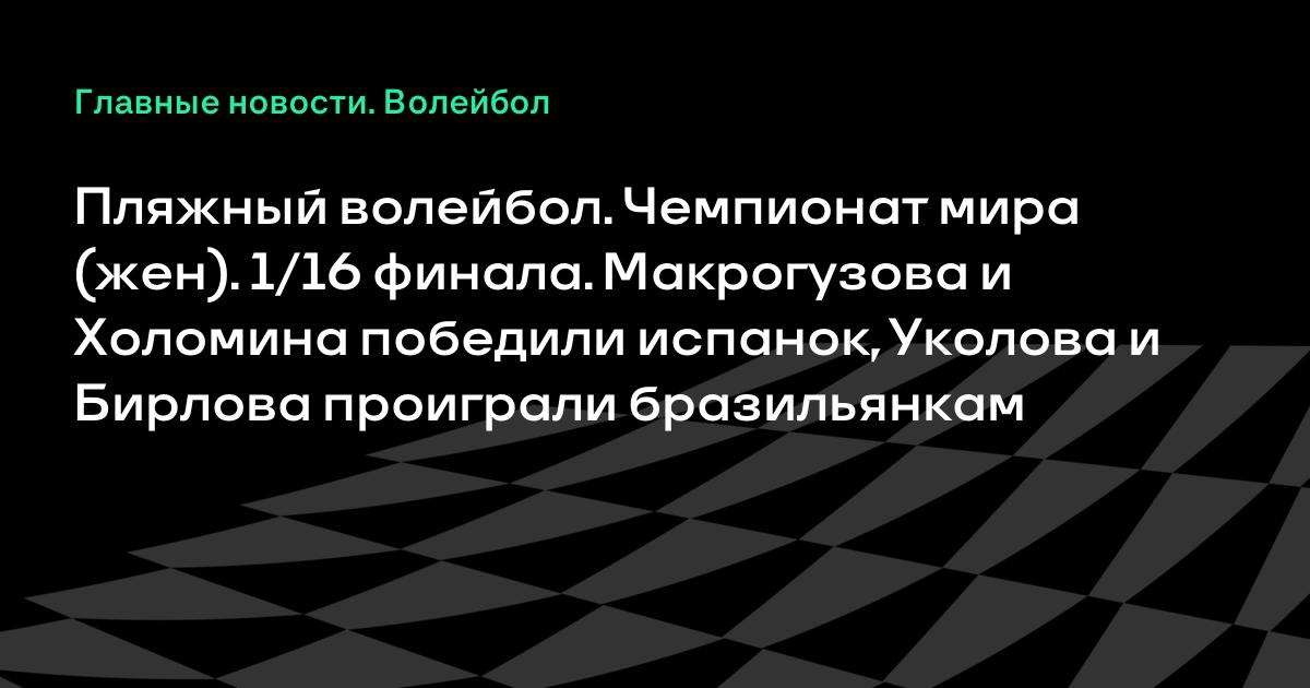 Пляжный волейбол. Чемпионат мира (жен). 1/16 финала. Макрогузова и Холомина победили испанок, Уколова и Бирлова проиграли бразильянкам