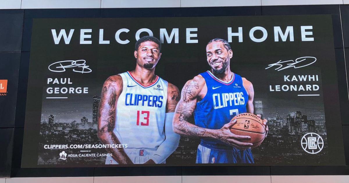 Напротив Staples Center появился большой билборд, приветствующий Пола Джорджа и Кавая Ленарда в «Клипперс».