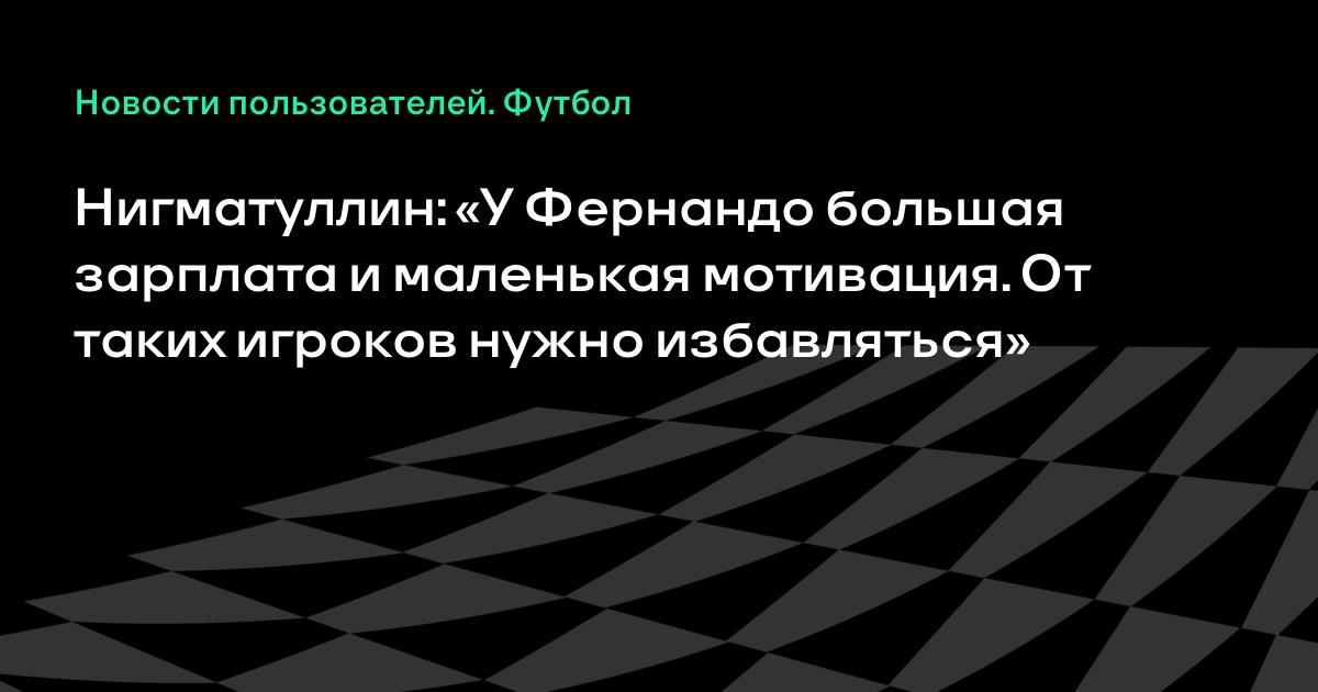 Нигматуллин: «У Фернандо большая зарплата и маленькая мотивация. От таких игроков нужно избавляться»