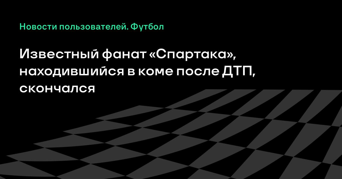 Известный болельщик московского «Спартака», который находился в коме после того, как попал в дорожно-транспортного происшествия, скончался. Об этом сообщило объединение фанатов красно-белых «Фратрия» в своём «твиттере».