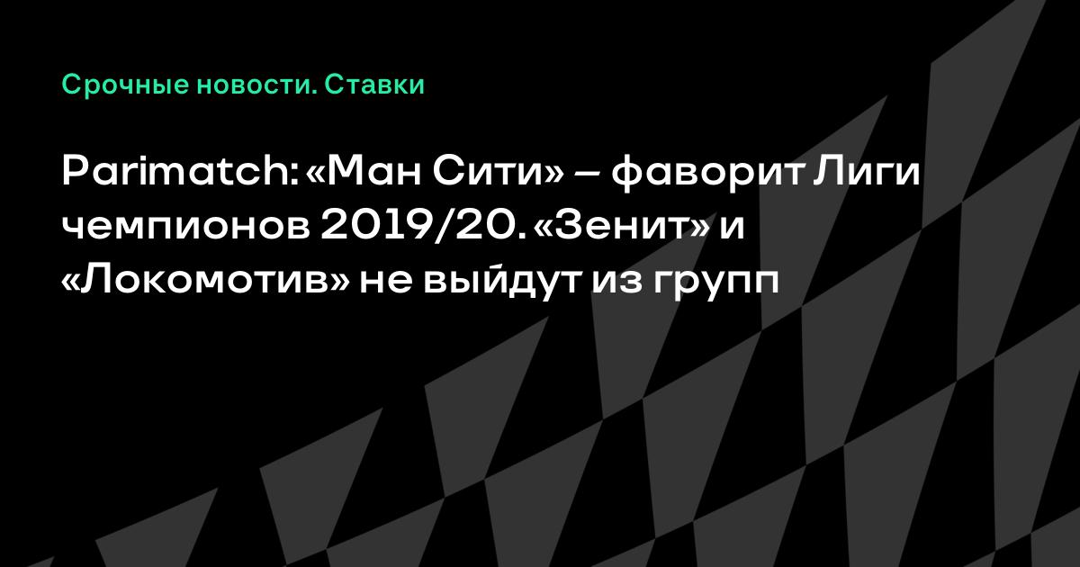 Parimatch: «Ман Сити» – фаворит Лиги чемпионов 2019/20. «Зенит» и «Локомотив» не выйдут из групп