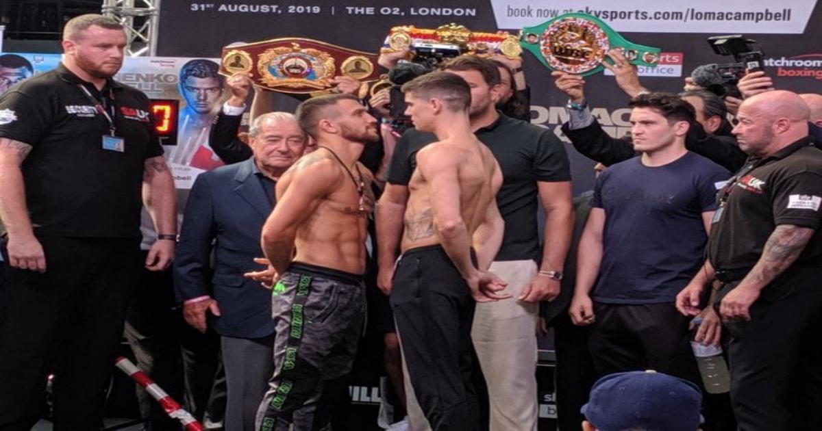 В главном поединке чемпион WBA, WBO в легком весе Василий Ломаченко проведет защиту титулов в бою против Люка Кэмпбелла. Оба боксера без проблем вписались в лимит легкого веса, показав на весах одинаковый вес – 60,9 кг.