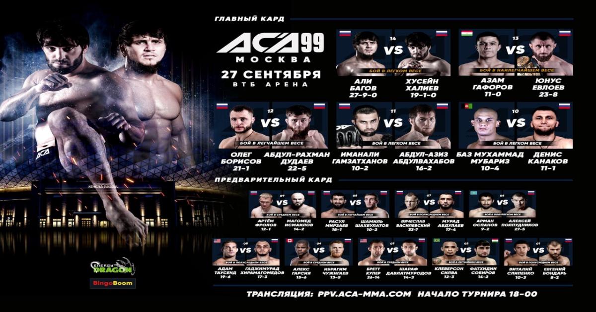 ACA 99: Багов победил болевым приемом Халиева, Исмаилов победил Фролова, Абдулаев нокаутировал Василевского и другие результаты