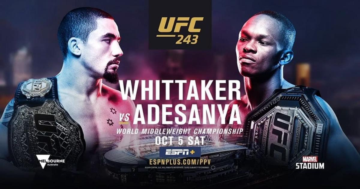 В Мельбурне состоялся турнир UFC 243. В главном поединке Исраэль Адесанья нокаутировал во втором раунде Роберта Уиттакера и завоевал титул чемпиона UFC в среднем весе.