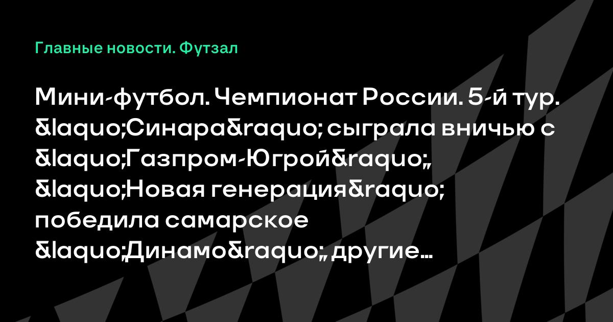 Мини-футбол. Чемпионат России. 5-й тур. «Синара» сыграла вничью с «Газпром-Югрой», «Новая генерация» победила самарское «Динамо», другие результаты