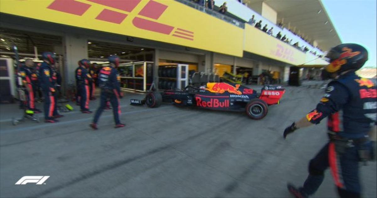 Болид Ферстаппена столкнулся с «Феррари» Шарля Леклера на первом круге, из-за чего откатился в хвост пелотона. После инцидента Ферстаппен не мог приблизиться к пилоту «Торо Россо» Даниила Квята, и в итоге команда позвала нидерландского гонщика в боксы.