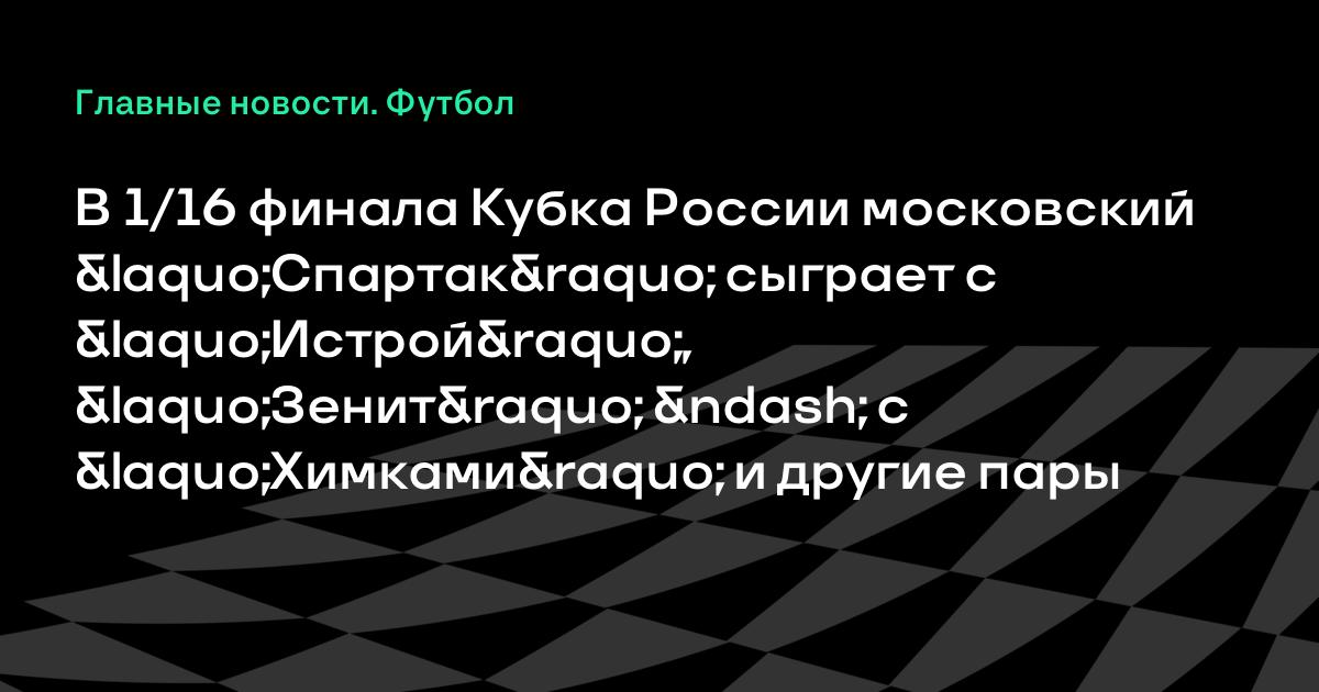 В 1/16 финала Кубка России московский «Спартак» сыграет с «Истрой», «Зенит» – с «Химками» и другие пары