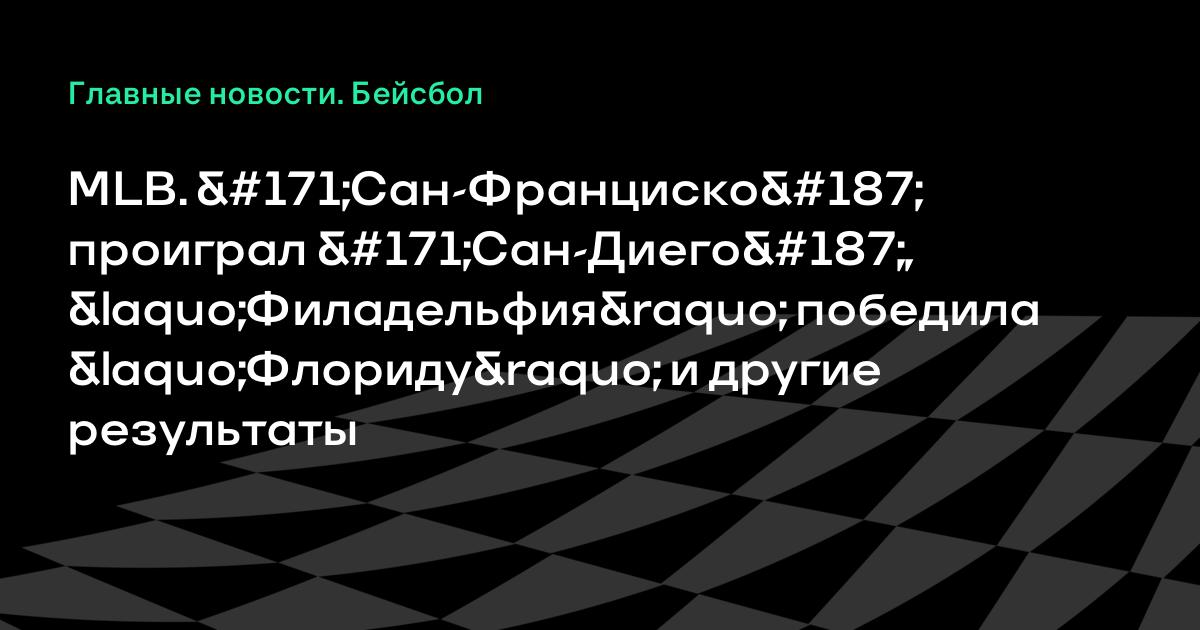 MLB. «Сан-Франциско» проиграл «Сан-Диего», «Филадельфия» победила «Флориду» и другие результаты