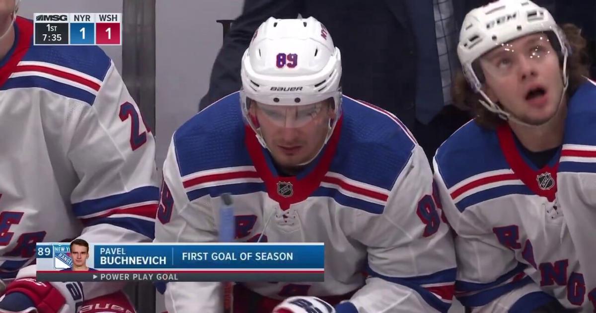 Форвард «Рейнджерс» Павел Бучневич забросил первую шайбу в регулярном чемпионате НХЛ в матче с «Вашингтоном» (2:5).