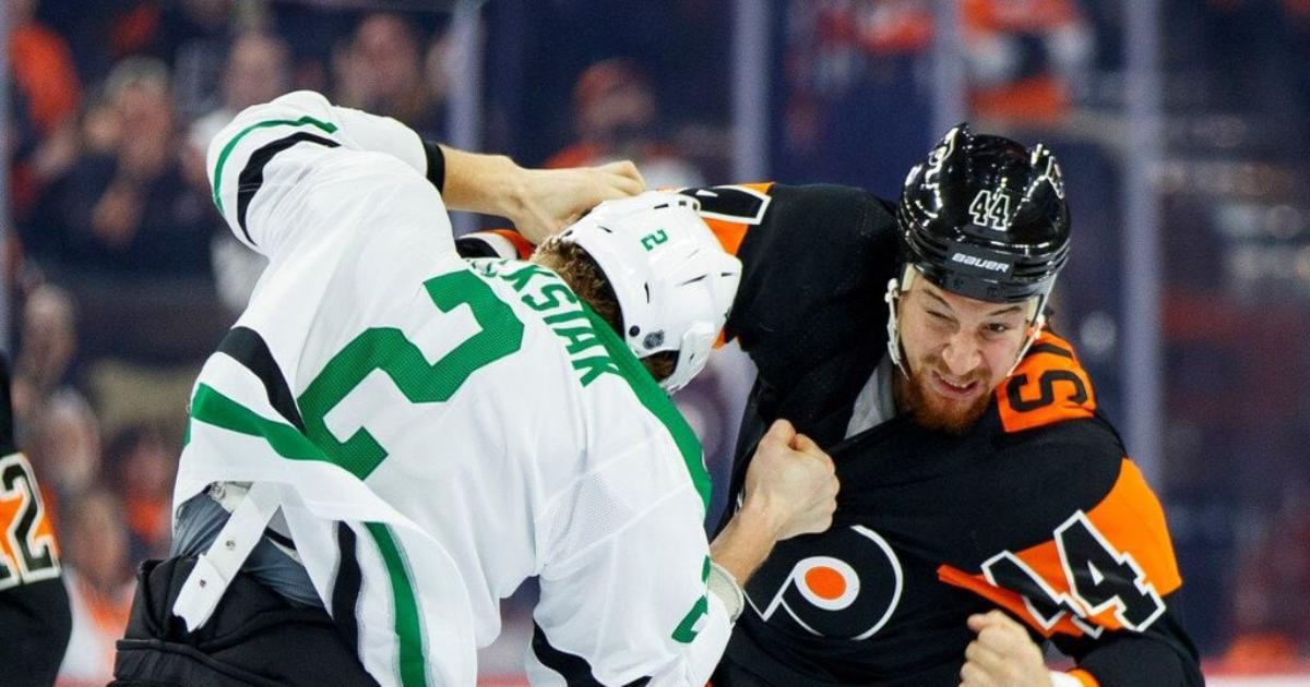 В матче регулярного чемпионата НХЛ между «Далласом» и «Филадельфией» (4:1) произошла драка.