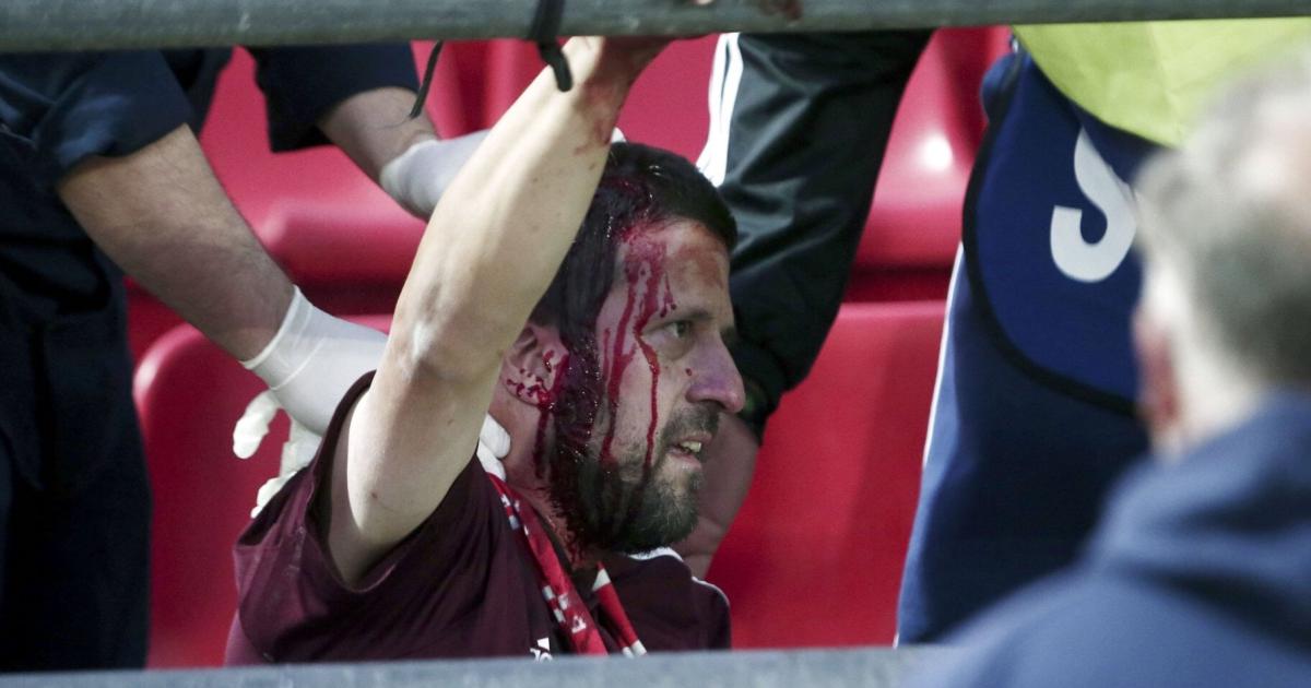 На 84-й минуте при счете 4:0 в пользу мюнхенцев около 50 человек с файерами и битами прорвались на поле и напали на болельщиков клуба из Германии. Сообщается, что четыре человека получили травмы.