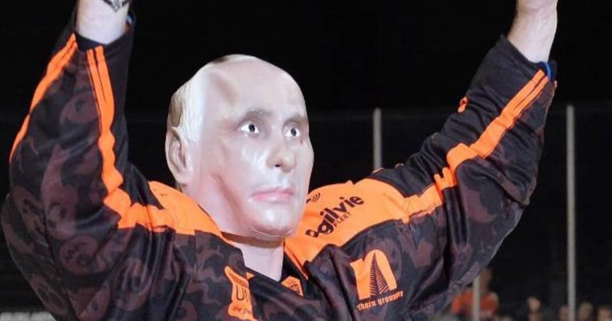 Лемтюгов в маске Путина – болельщикам «Шеффилда»: «Спасибо за теплый прием. Нет войне, из России с любовью»