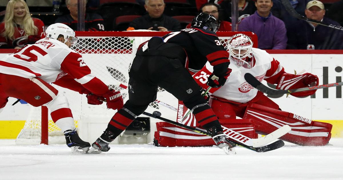 Форвард «Каролины» Андрей Свечников был назван третьей звездой матча регулярного чемпионата НХЛ против «Детройта» (7:3).