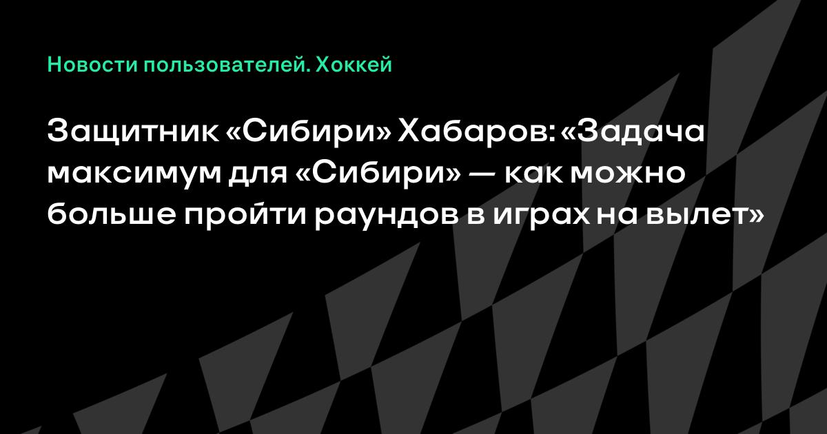 Защитник «Сибири» Хабаров: «Задача максимум для «Сибири» — как можно больше пройти раундов в играх на вылет»