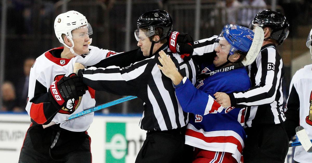 В матче регулярного чемпиона НХЛ между «Оттавой» и «Рейнджерс» (6:2) произошли три драки в первом периоде.