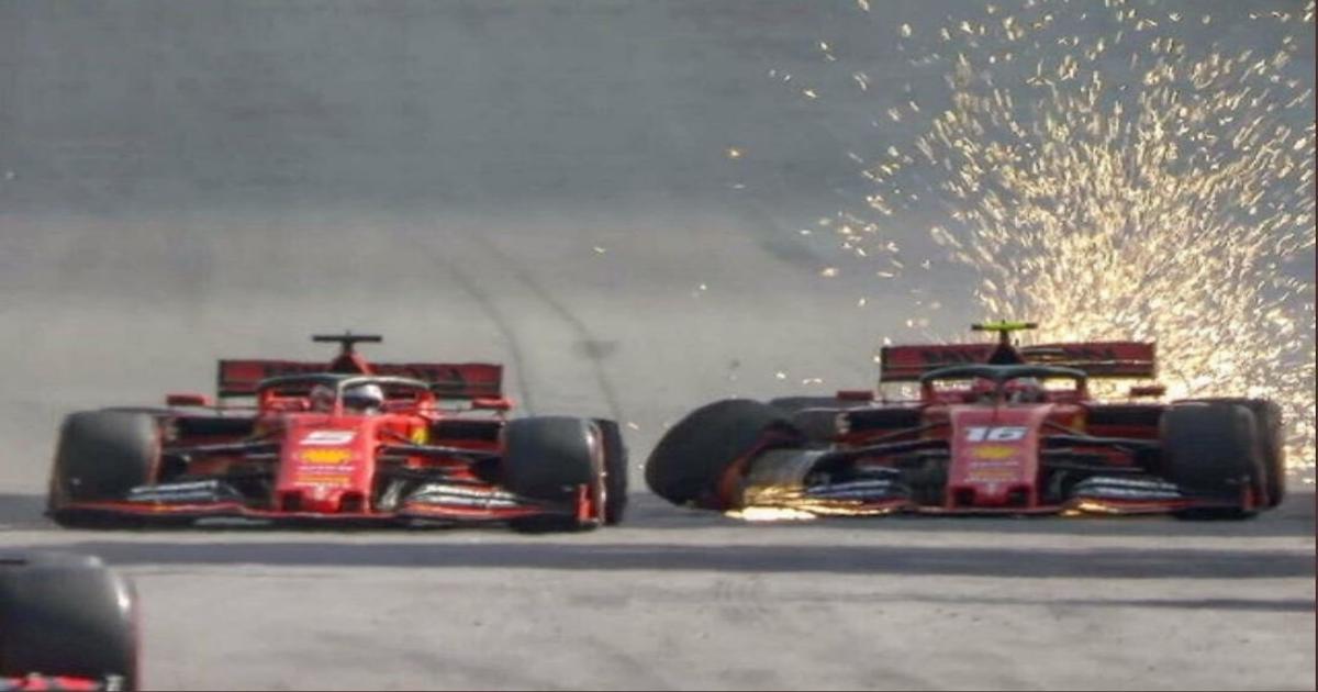 Взрыв в «Феррари»: Феттель подрезал Леклера при контратаке на последних кругах. Сошли оба