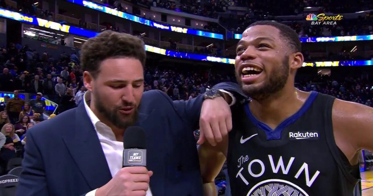 🎙️ @KlayThompson takes over the postgame interview with @Omarispellman! #DubNation pic.twitter.com/83wAunvUQu