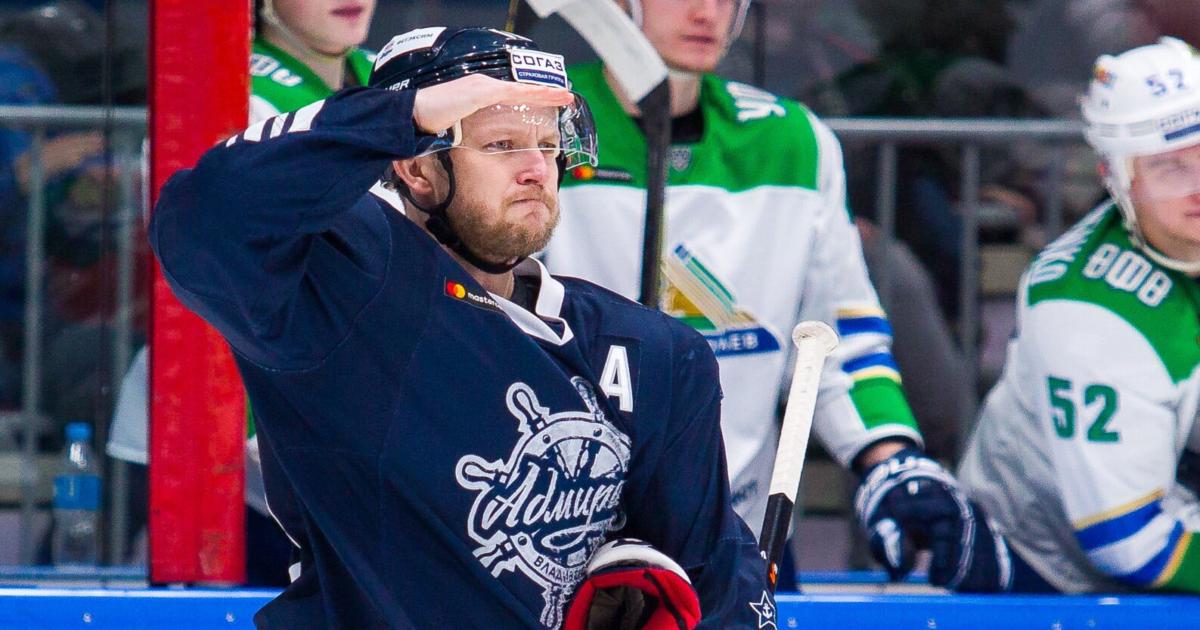 Капитан «Адмирала» Константин Глазачев после победы в матче регулярного чемпионата КХЛ с «Куньлунем» (5:4 Б).