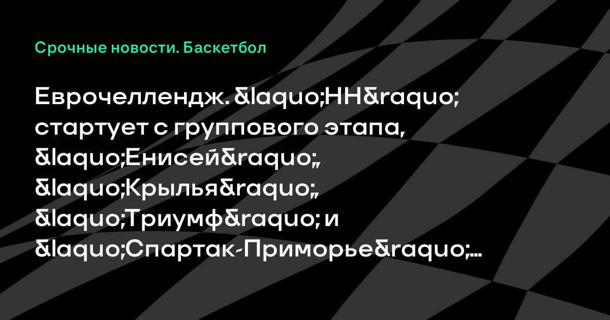 Еврочеллендж. «НН» стартует с группового этапа, «Енисей», «Крылья», «Триумф» и «Спартак-Приморье» – с квалификации