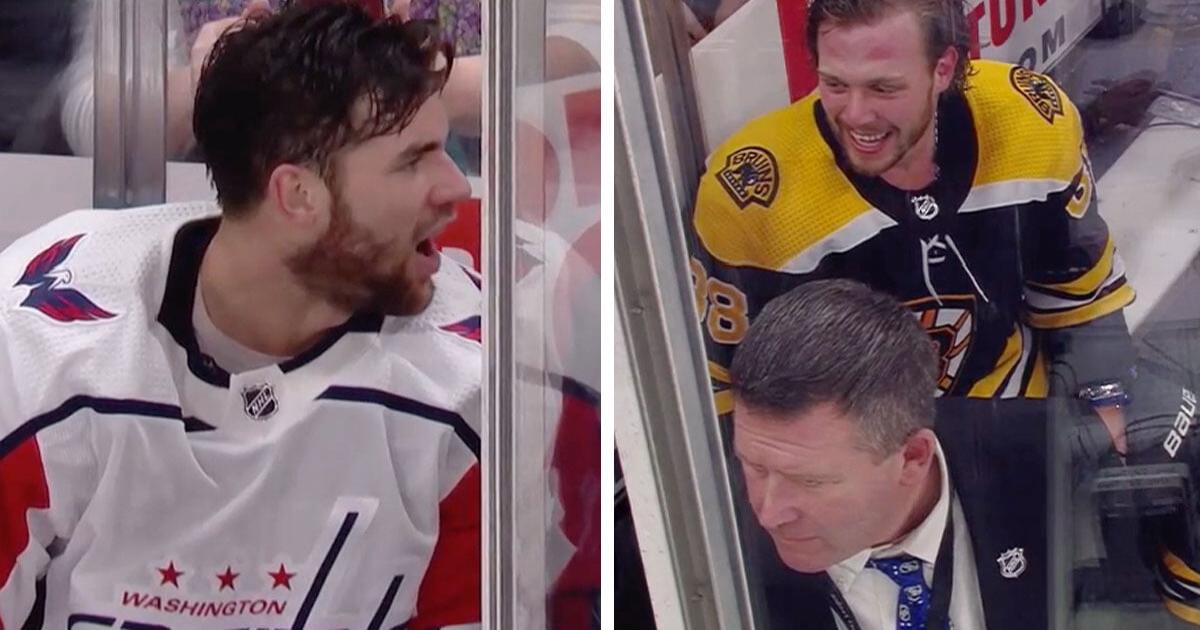 Форвард «Бостона» Давид Пастрняк вступил в стычку с форвардом «Вашингтона» Томом Уилсоном во время сегодняшнего матча между командами.