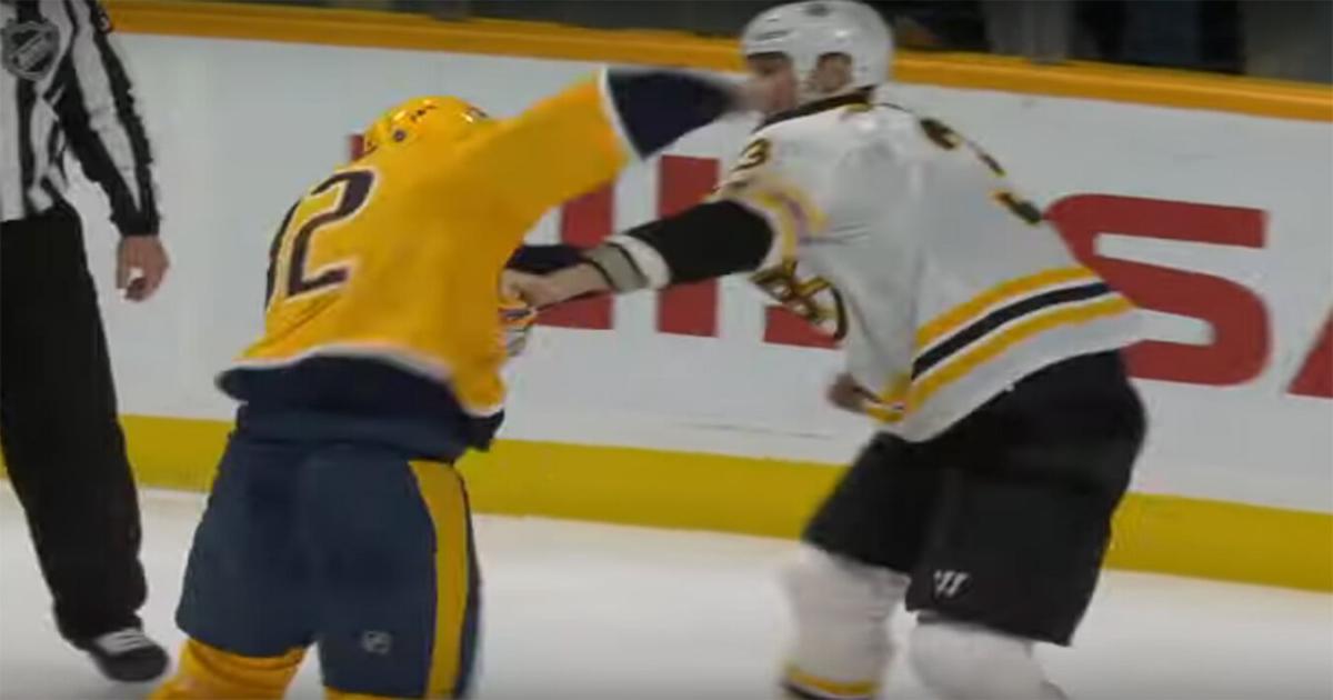 Форвард «Нэшвилла» Яков Тренин подрался с капитаном «Бостона» Здено Харой в сегодняшнем матче между командами.