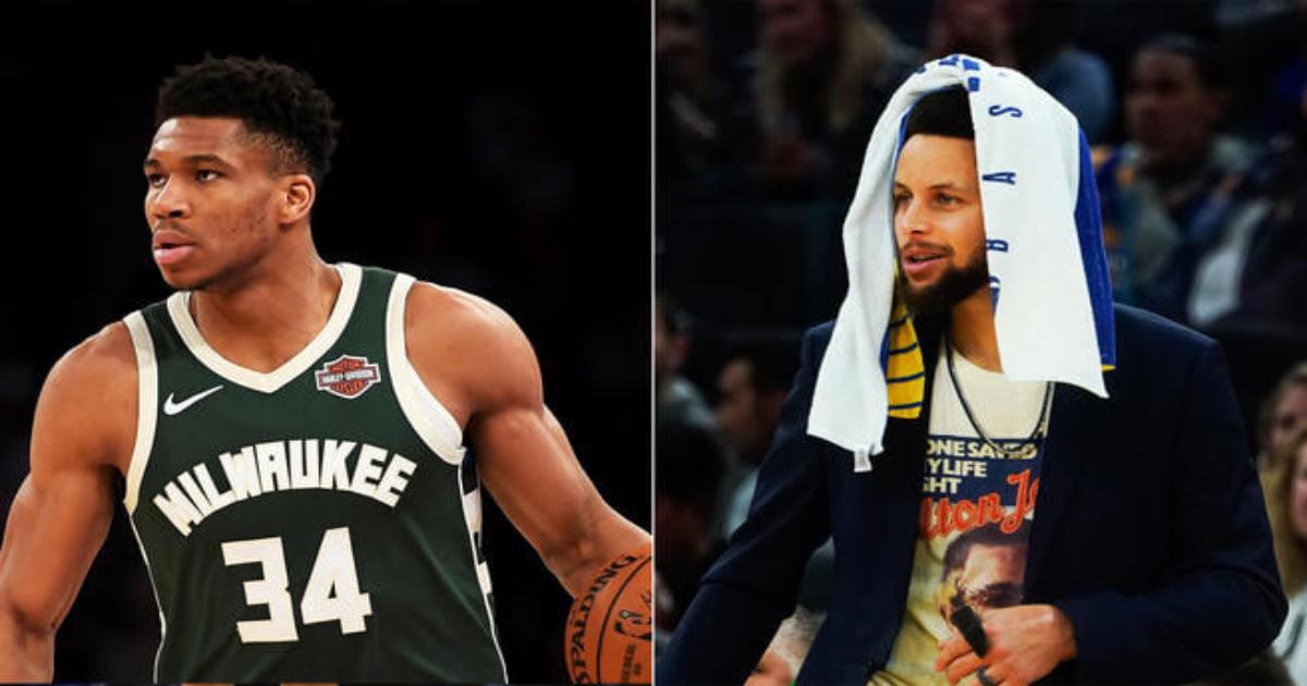 Разыгрывающий «Уорриорз» Стеф Карри и форвард «Бакс» Яннис Адетокумбо поприветствовали друг друга после матча между командами в среду.