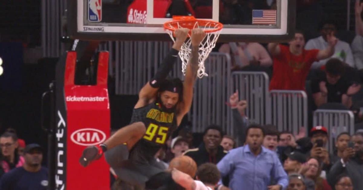 В концовке матча «Атланта» – «Финикс» разыгрывающий «Хоукс» Трэй Янг навесил на кольцо с центра площадки, и Деандре Бембри вколотил сверху двумя руками спиной к кольцу.