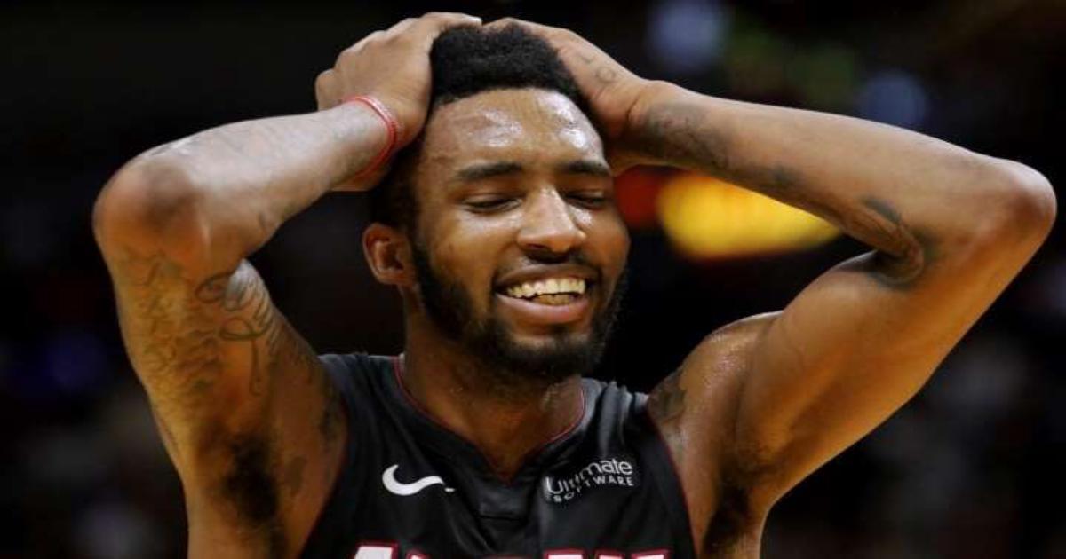 Форвард «Майами» Деррик Джонс эффектно добавил сверху после промаха своего партнера по команде Бэма Адебайо.