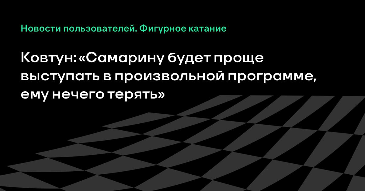 Думаю, Самарину будет чуть проще выступать в произвольной программе после неудачного выступления в короткой, потому что ему уже, наверное, нечего терять. Желаю ему, чтобы он реализовал себя в произвольной по максимуму и добился самых высоких результатов», — сказал Ковтун.