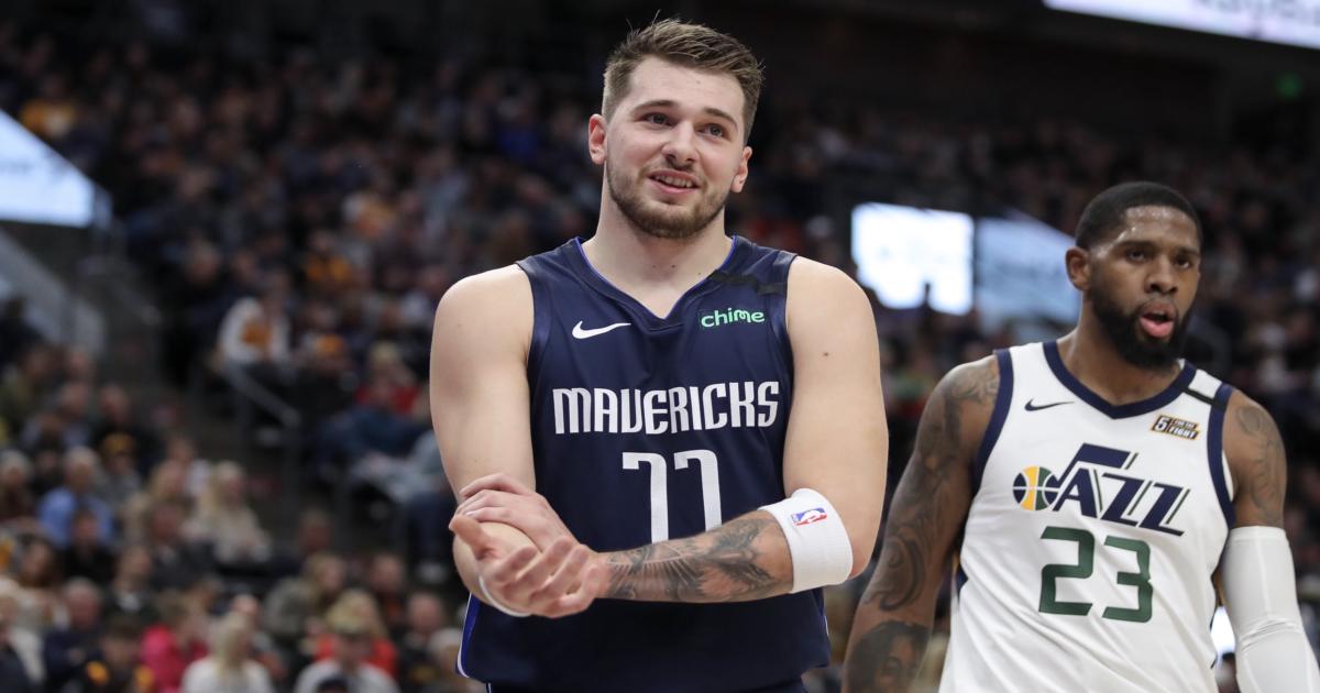 Разыгрывающий «Далласа» Лука Дончич, сидя на скамейке запасных, посмеялся над форвардом «Юты» Джо Инглсом, который совершил пробежку.